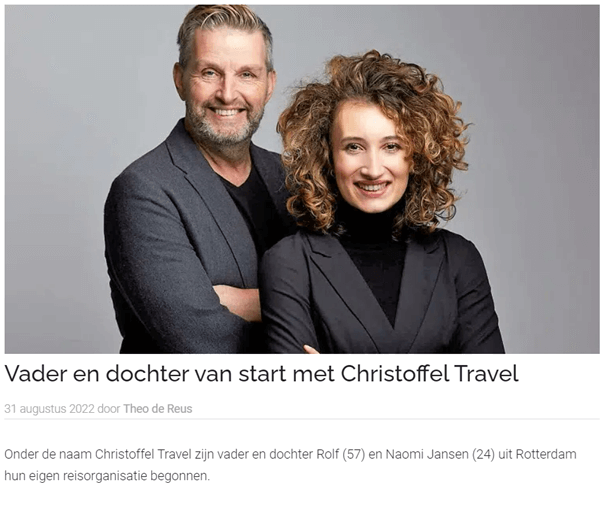 Lees het artikel ‘Vader en dochter van start met Christoffel Travel’ van Travmagazine.