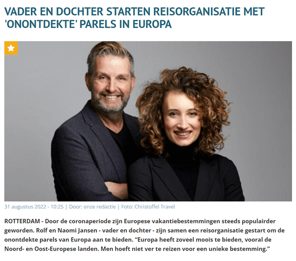 Lees het artikel ‘Vader en dochter starten reisorganisatie met onontdekte parels in Europa’ van Reisbizz.