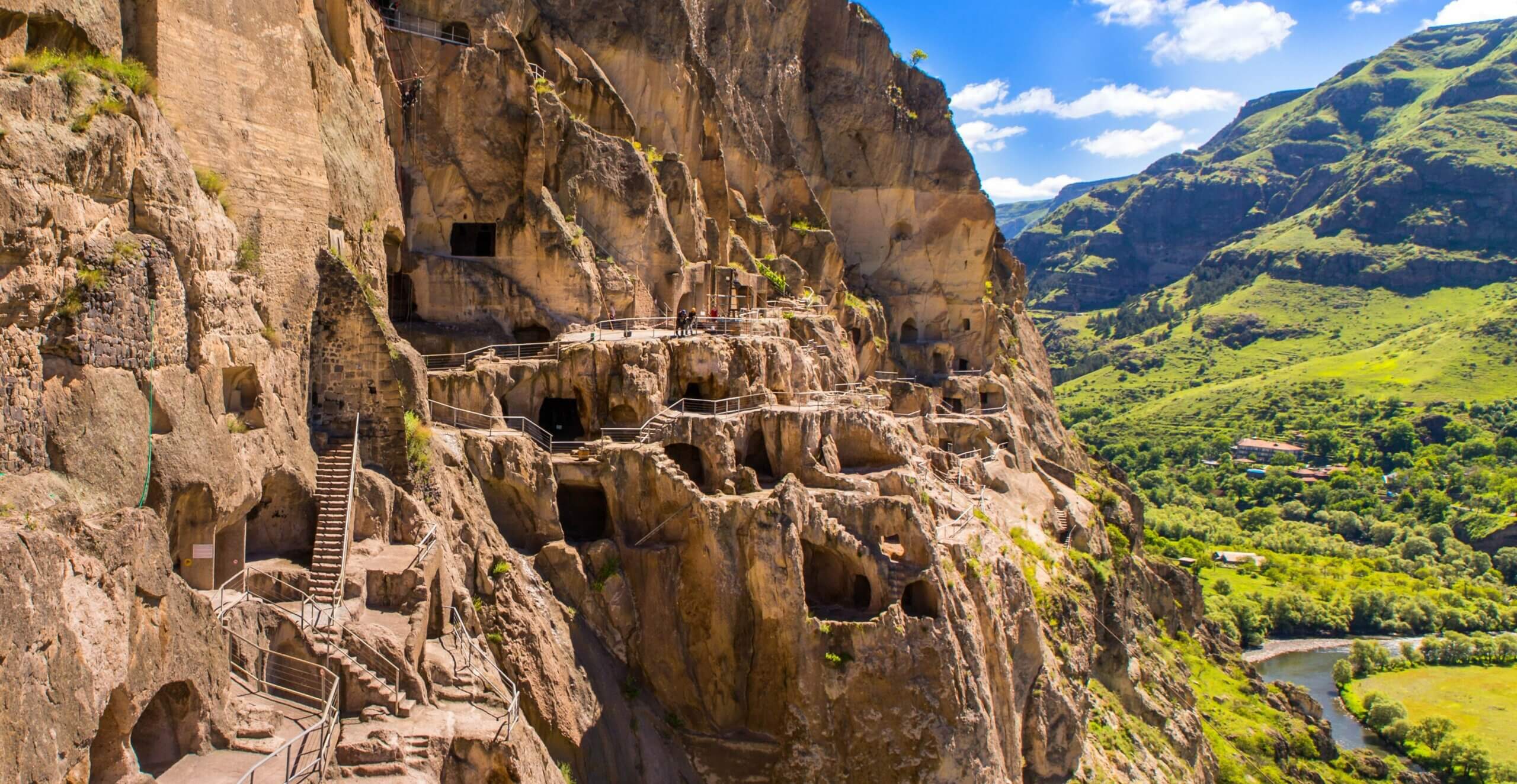 Op een winderige heuvel in de buurt van Gori in het oosten van het land liggen de fascinerende overblijfselen van een van de belangrijkste heidense nederzettingen in Georgië. De wirwar van grotten die de stad Uplistsikhe vormde, dateert uit de 7e eeuw v. Chr. en telde ooit 700, maar er zijn er nog slechts 250 over. Hoewel het heidendom uitstierf toen het christendom in de 4e eeuw werd aangenomen, bleef Uplistsikhe bewoond tot de jaren 1300, en de nederzetting bleef gedijen in zijn strategische positie op de handelsroute van de Zijderoute.