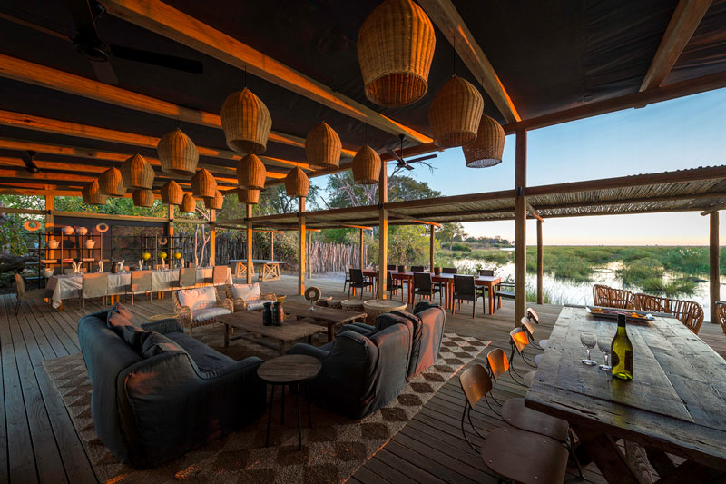 De dag sluit je af met een intiem diner op het dek van het kamp, met uitzicht op de rivier waar dieren komen drinken.