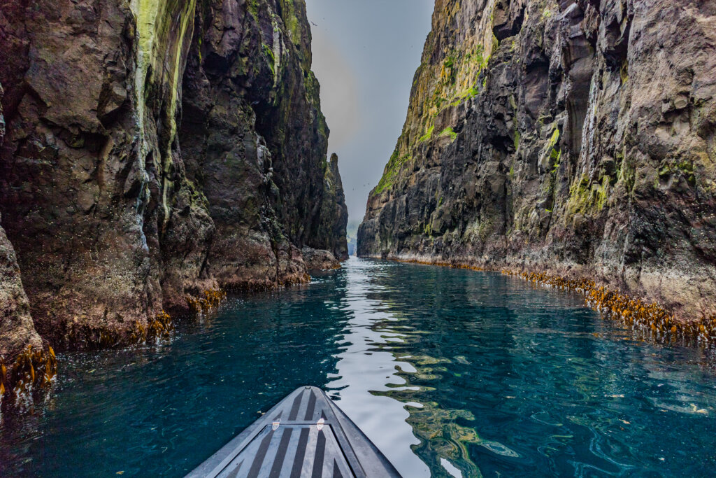 De tocht begint met een grootse vaart langs majestueuze zeekliffen. Speur naar papegaaiduikers, dat charmante vogeltje met die kleurrijke snavel, of de indrukwekkende jan-van-gent, die alleen kan broeden op het geïsoleerde eilandje ten westen van het hoofdeiland.