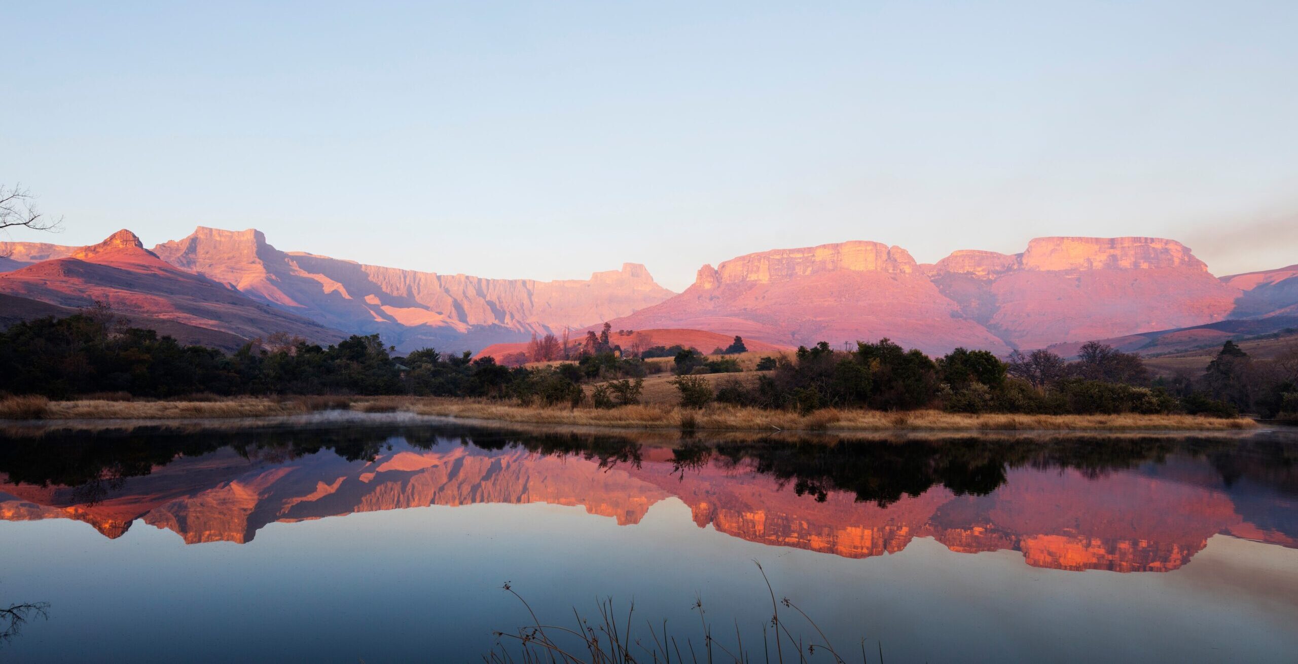 Na een ontspannen ontbijt haal je je huurauto op en begint je reis door het schilderachtige binnenland van KwaZulu-Natal. De route voert langs glooiende heuvels, landelijke dorpjes en weidse vergezichten tot je aankomt bij Three Tree Hill Lodge, aan de voet van de indrukwekkende Drakensbergen. Hier verblijf je drie nachten op basis van volpension. De lodge ademt een warme, huiselijke sfeer, met gezellige lounges en een uitnodigende veranda. ’s Avonds geniet je van een sfeervol diner bij het haardvuur, terwijl de sterren helder schitteren boven het berglandschap.