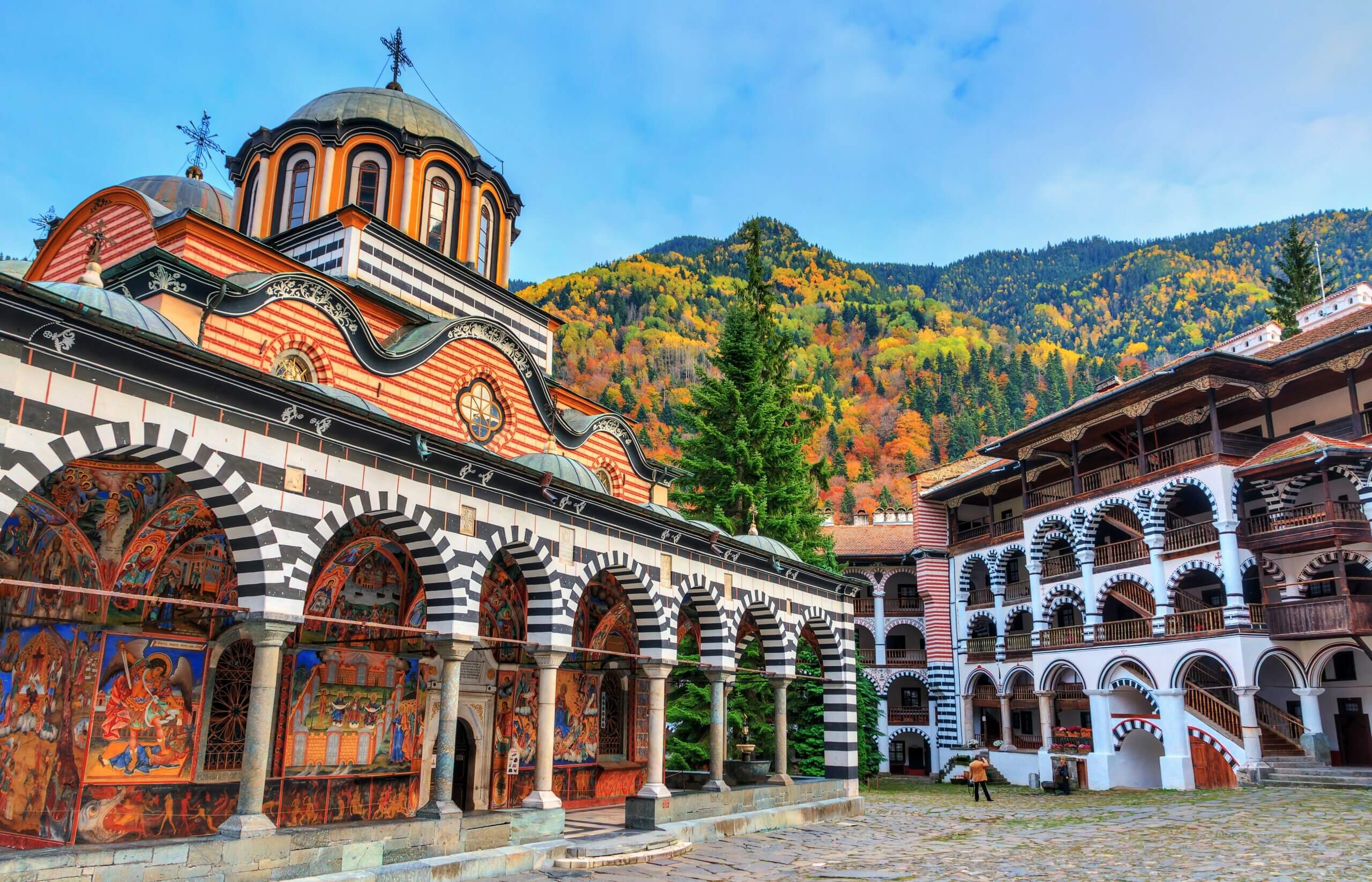In de middag vertrekt u naar het UNESCO werelderfgoed van het Rila klooster, gelegen in een opvallend mooie bergvallei; het is een enorm belangrijk religieus en cultureel centrum voor het Bulgaarse volk. Het is een enorm belangrijk religieus en cultureel centrum voor het Bulgaarse volk. Het is in prachtige staat gebleven en heeft de prachtigste felgekleurde fresco’s en kenmerkend gestreept metselwerk. Oorspronkelijk gesticht in de 10e eeuw diende het klooster om de Bulgaarse cultuur te bewaren tijdens de 400 jaar van Ottomaanse overheersing en was het een schuilplaats voor de Bulgaarse revolutionairen. Vandaag de dag herbergen de prachtige kerk en het museum een onschatbare collectie fresco’s, vergulde iconostase en religieuze kunst en artefacten.